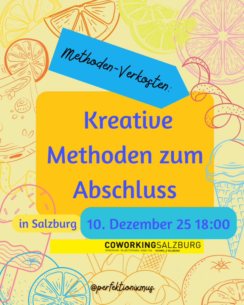 10.12. „Juhuu 2025 ist vorbei: Kollaborative + reflexive Methoden zum Abschluss aka Riesen-Retro“, jeweils 18:00-21:00, CoworkingSalzburg
